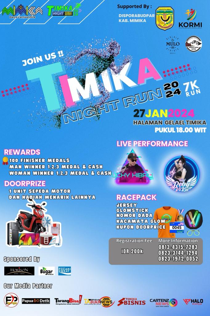 Untuk menyukseskan kegiatan tersebut, pihak penyelenggara menggelar rangkaian kegiatan yang diawali dengan event fun run bertajuk Timika Night Run (TNR) 2024 yang akan dilaksanakan pada 27 Januari 2024 mendatang.