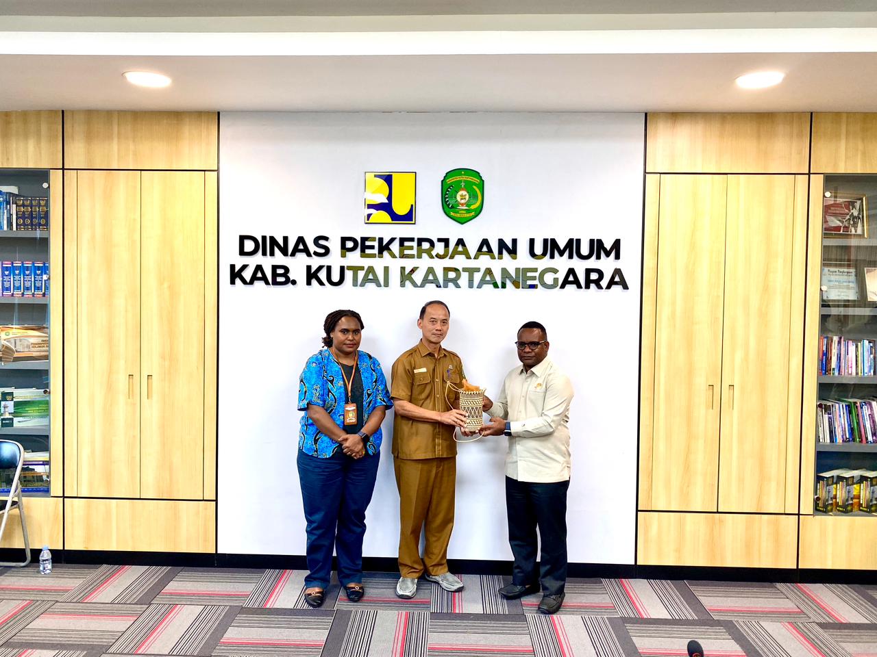 Ketua Komisi IV DPRK Mimika, Elinus Mom didampingi Wakil Ketua III DPRK Mimika, Ester Tsenawatme saat menerima cendera mata dari Dinas PU Kukar. Foto: Joe Situmorang/Papua60Detik