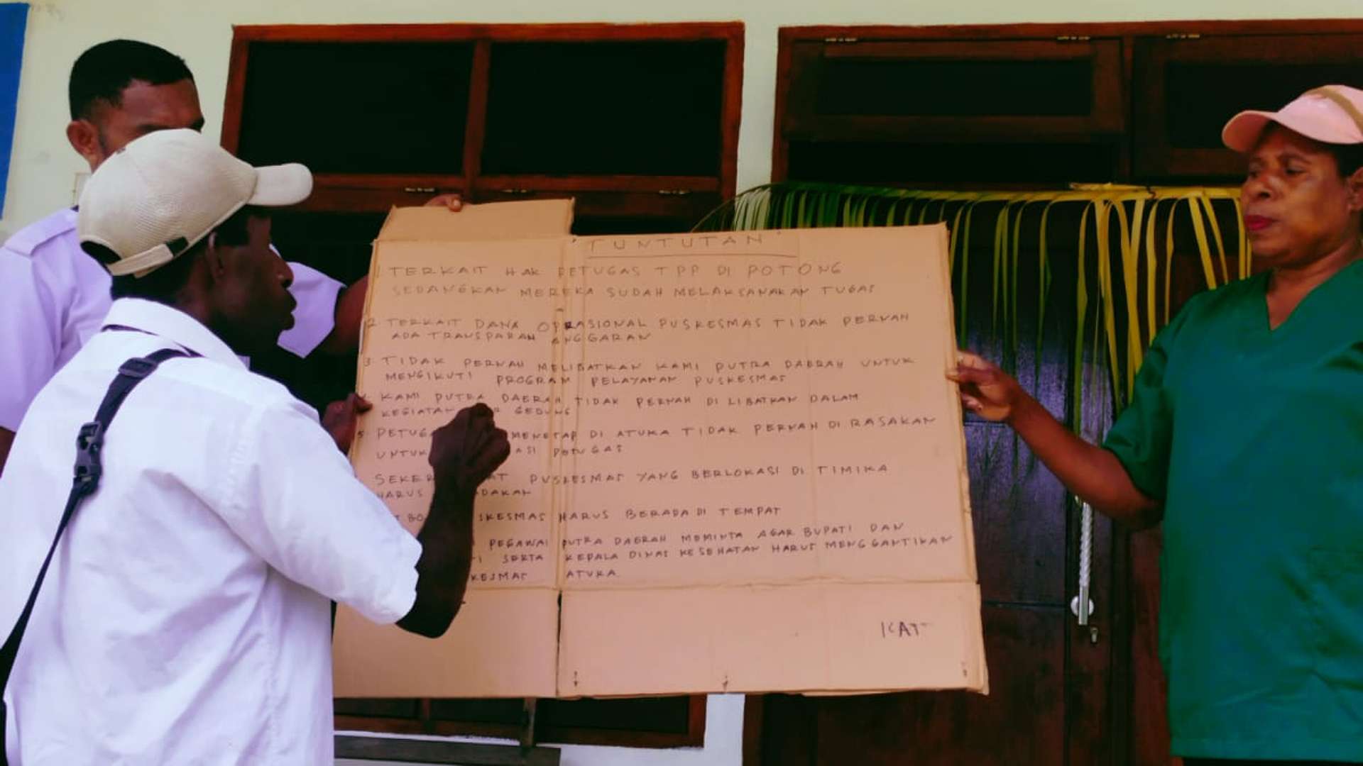 Petugas yang terlibat aksi itu menuntut kejelasan terkait pemotongan TPP, padahal mereka sudah melaksanakan tugas. Dana operasional Puskesmas menurut mereka harus dibuka secara transparan.