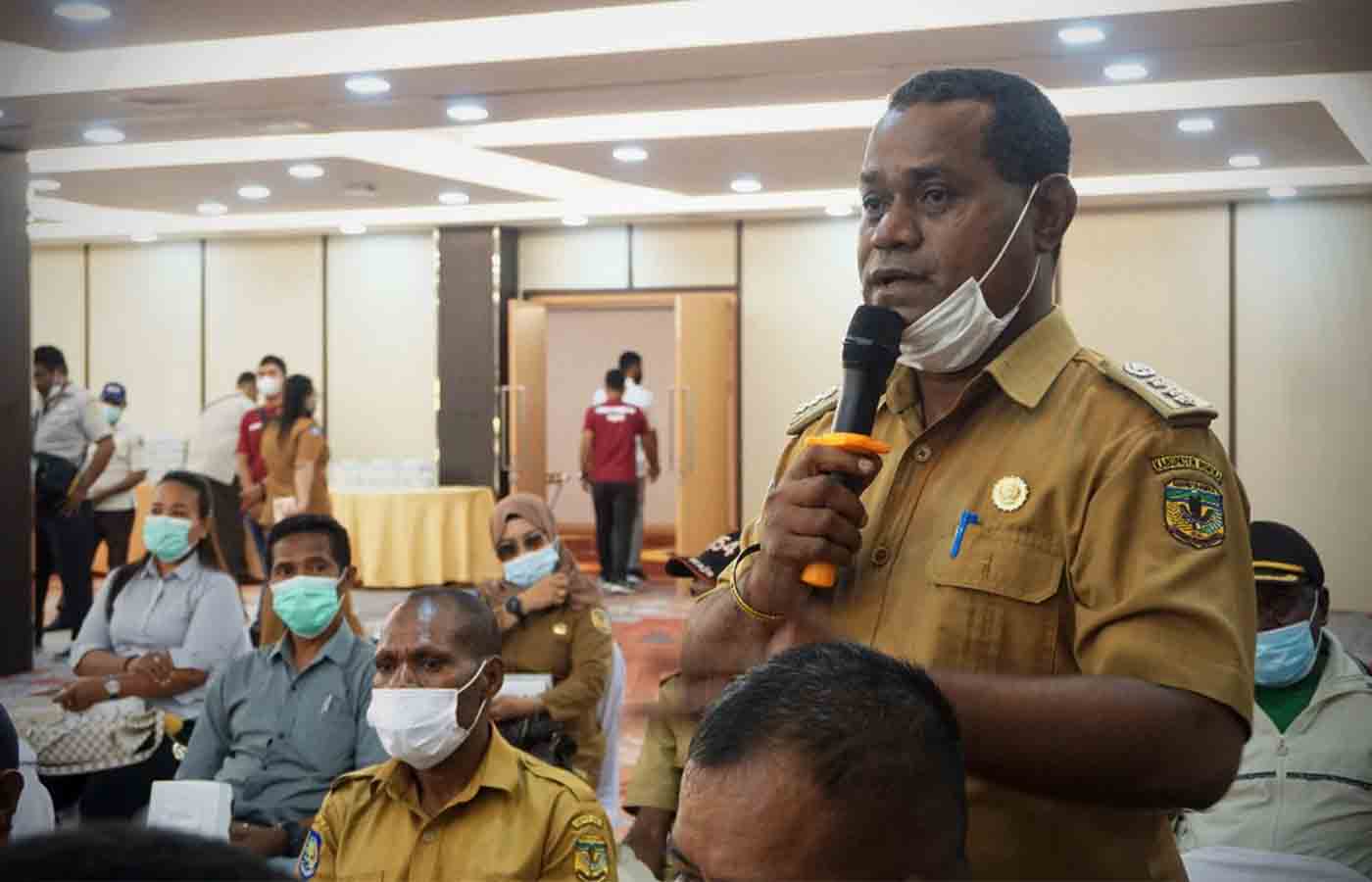Kepala Distrik Kwamki Narama, Betes Suebu mengajukan pertanyaan.