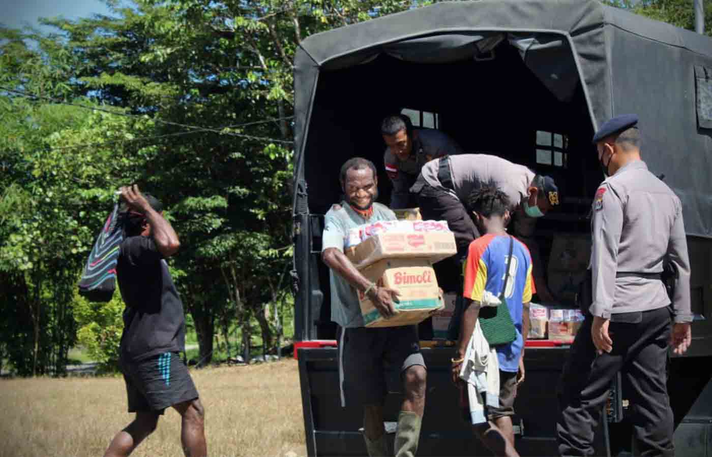 Warga Kampung Mandiri Jaya menrerima bantuan dari Brimob Batalyon B Pelopor Polda Papua.