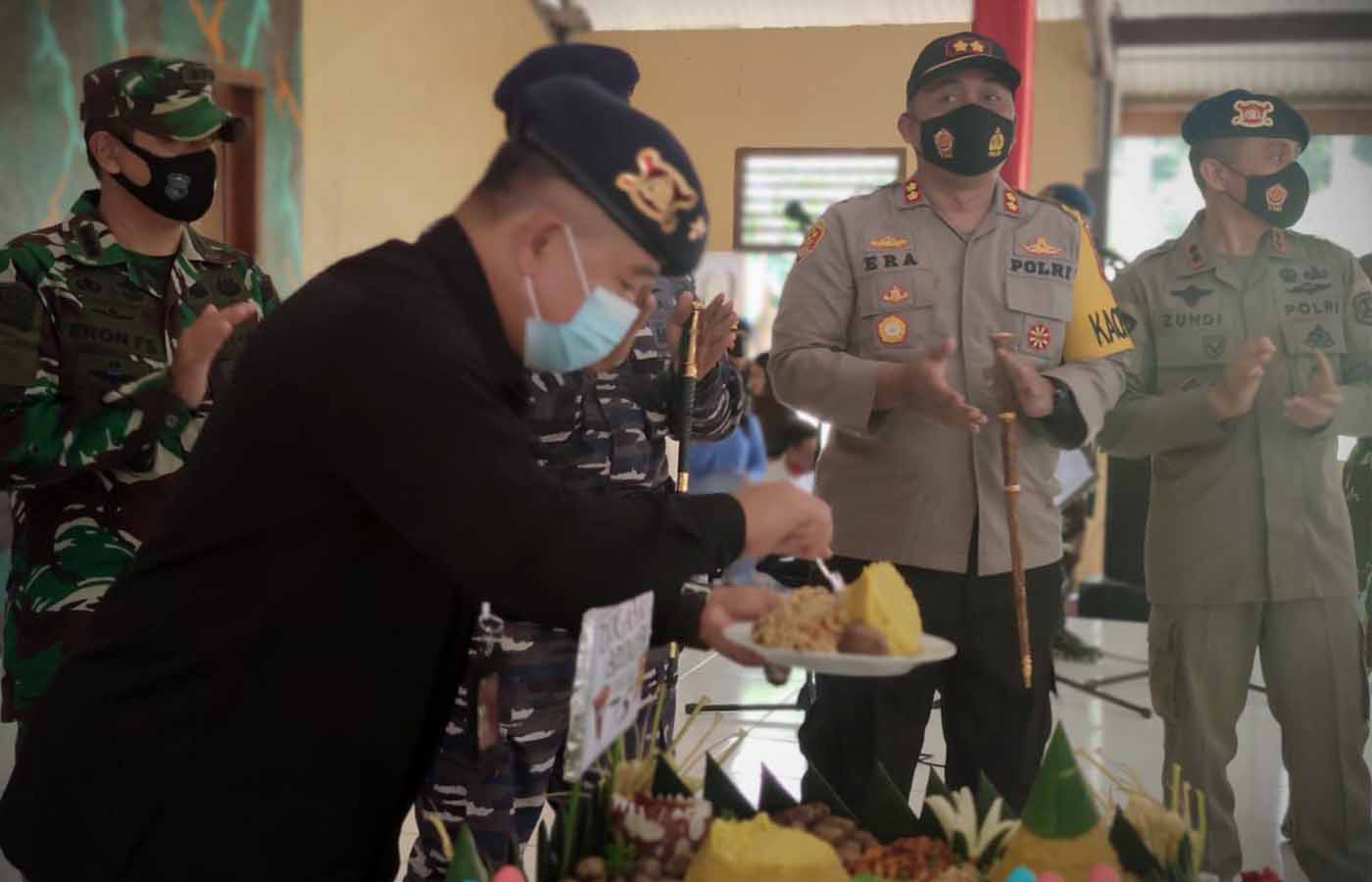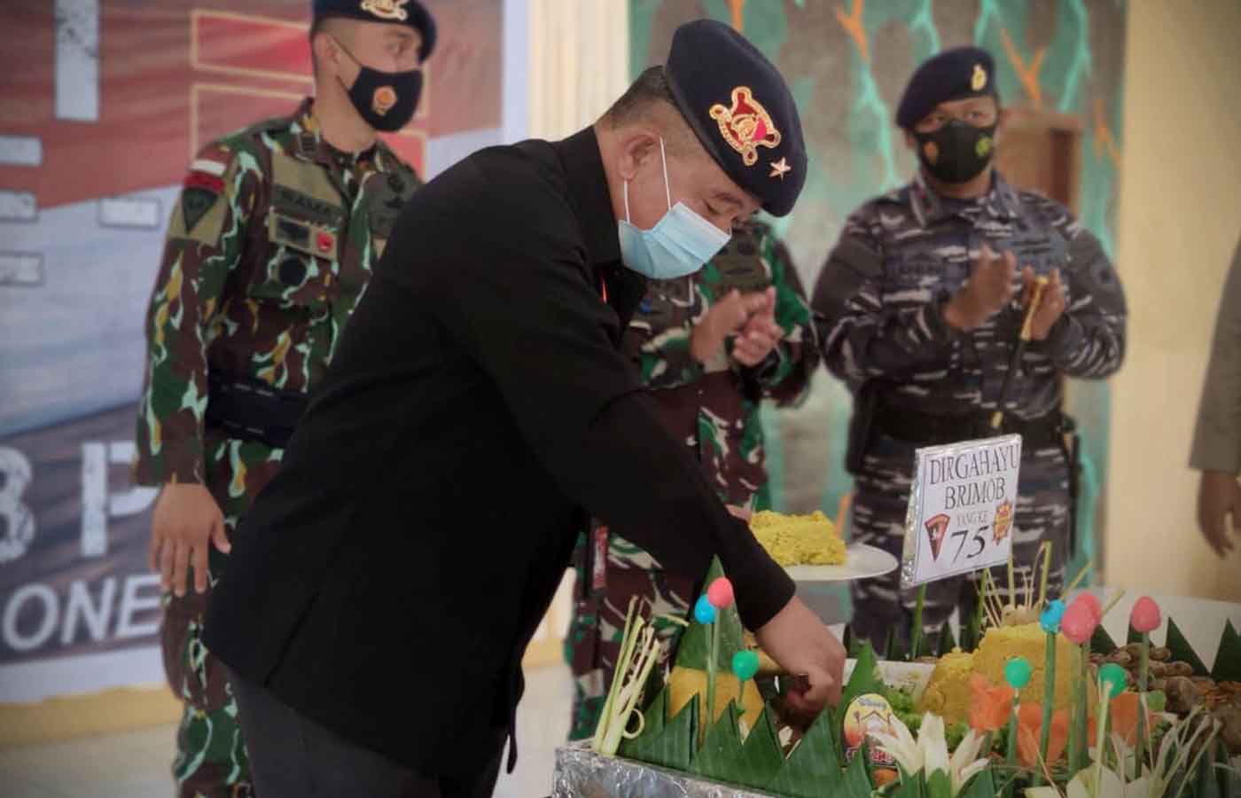 Pemotongan tumpeng HUT Korps Brimob Polri ke-75.