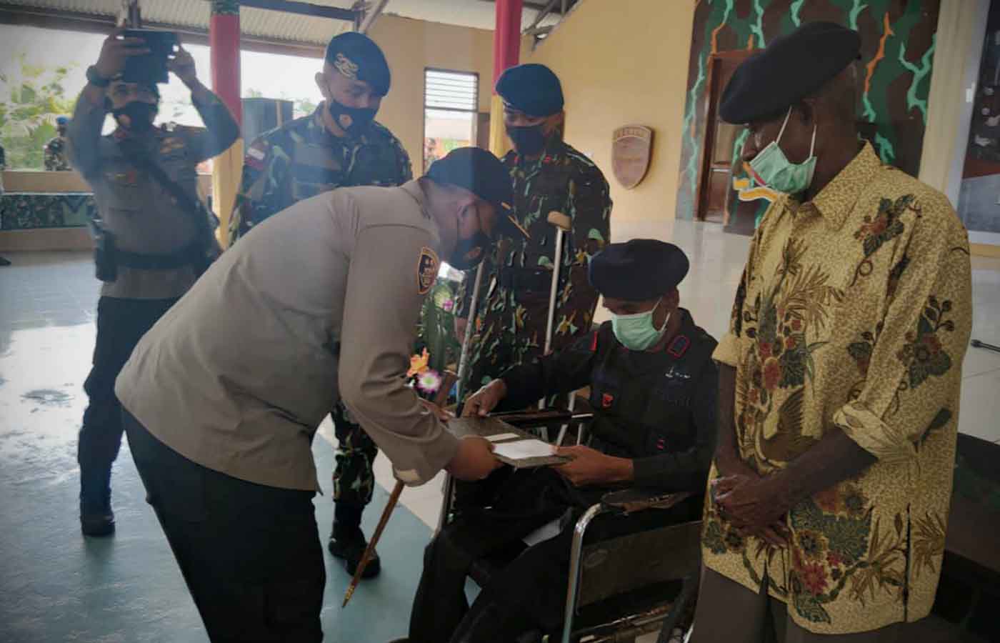 Penyerahan tali asih ke beberapa pasukan Brimob Batalyon B Pelopor Polda Papua.