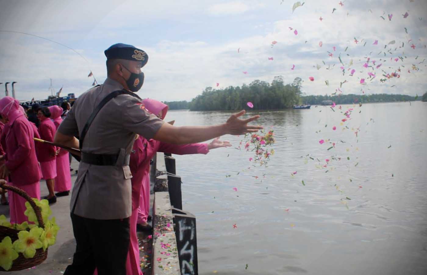 Tabur bunga di Dermaga PPI Pomako untuk mengenang pahlawan yang gugur di medan juang.
