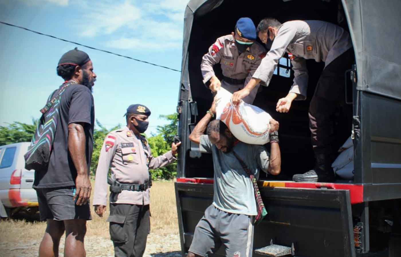 Pemberian bantuan kepada warga Kampung Mandiri Jaya, Distrik Wania yang terkena dampak Pandemi Covid-16.