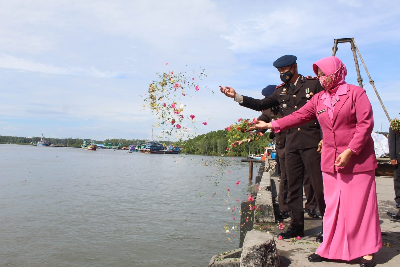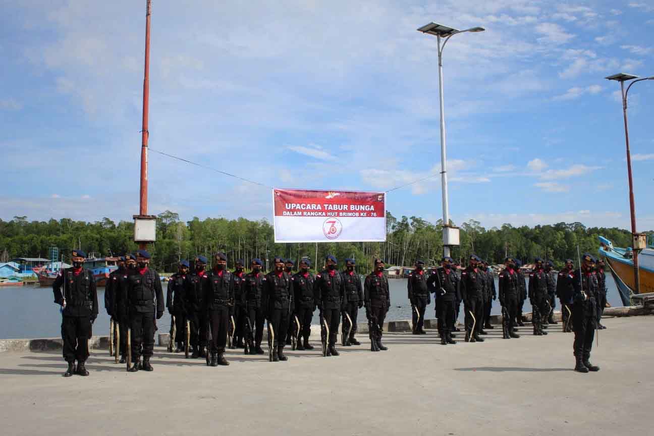Upacara tabur bunga menyambut peringatan HUT Brimob ke-76 di dermaga PPI Pomako