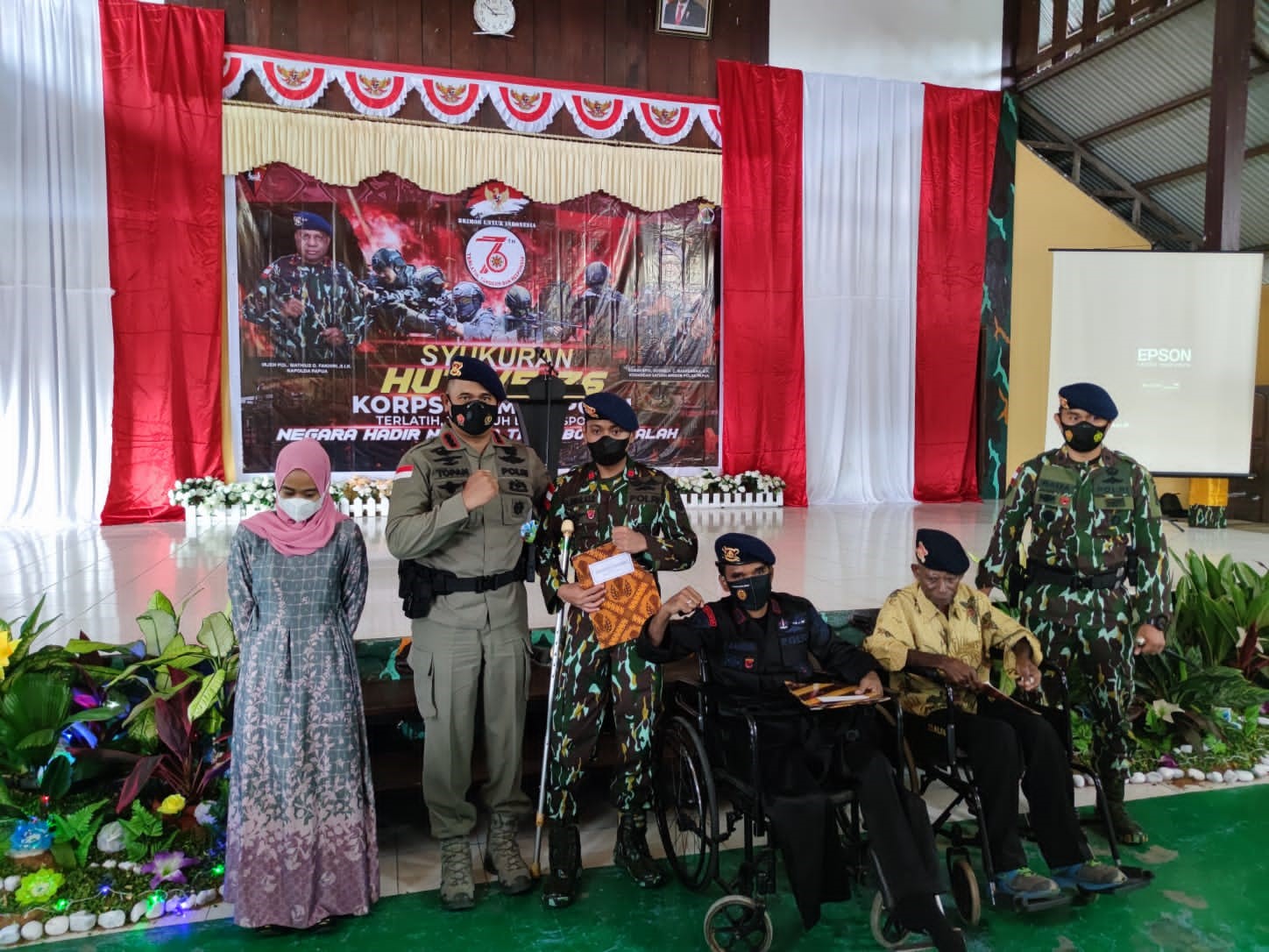 Papua60detik - Batalyon B Pelopor Satbrimob Polda Papua memperingati HUT Brimob ke-76 dengan syukuran di Aula Ronald Sopamena, Mako Brimob Yon B, Jalan Agimuga, Mile 32, Minggu (14/11/2021). Dengan mengusung tema "Terlatih, Tangguh, Responsif", Yon B Pelopor juga telah melaksanakan beragam kegiatan. Berikut foto rangkaian kegiatannya. Foto: PID Yon B Pelopor Satbrimob Polda Papua.