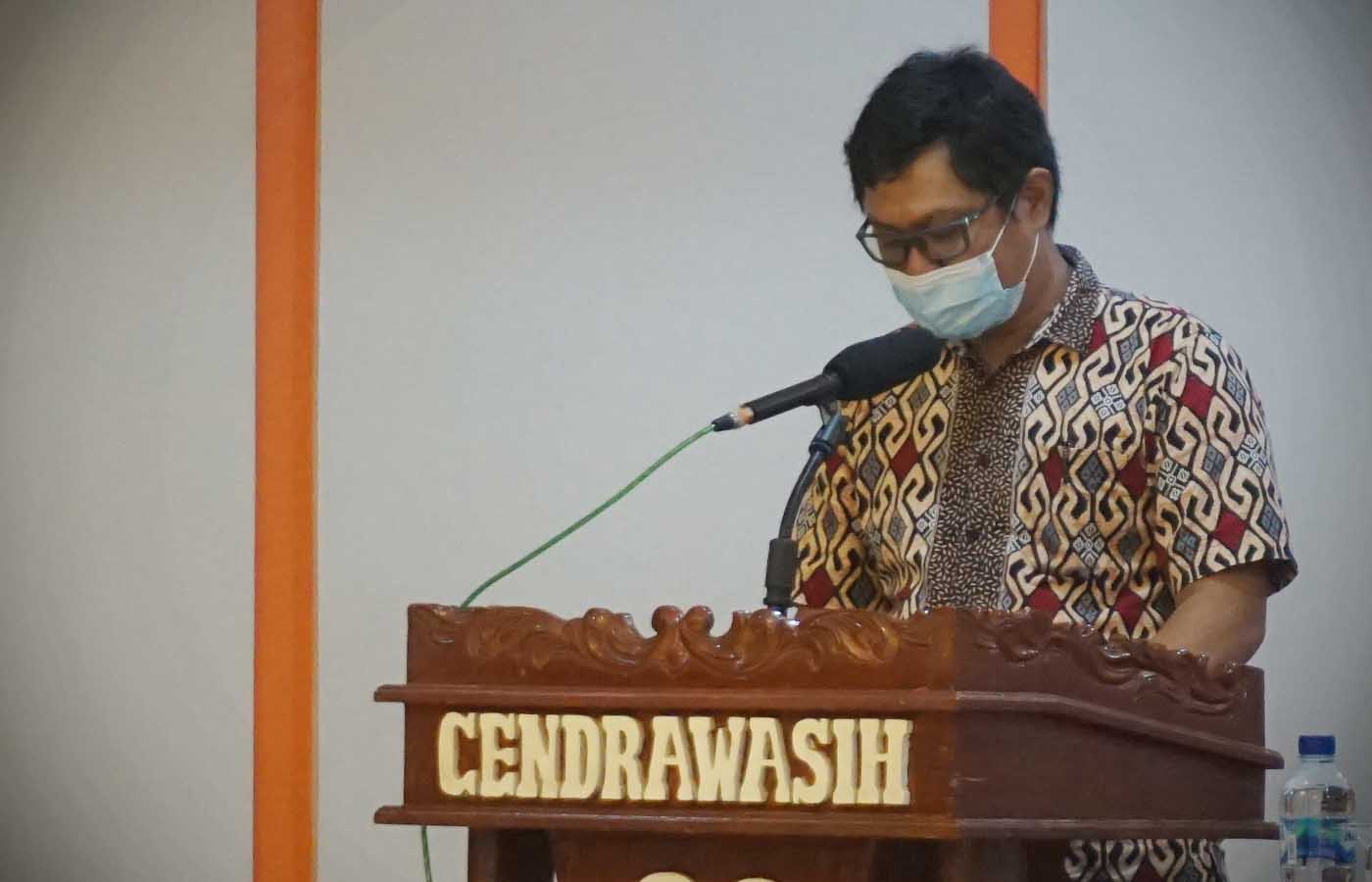 Kepala Bappeda Mimika, Yohana Paliling saat membacakan pemaparan FPD.