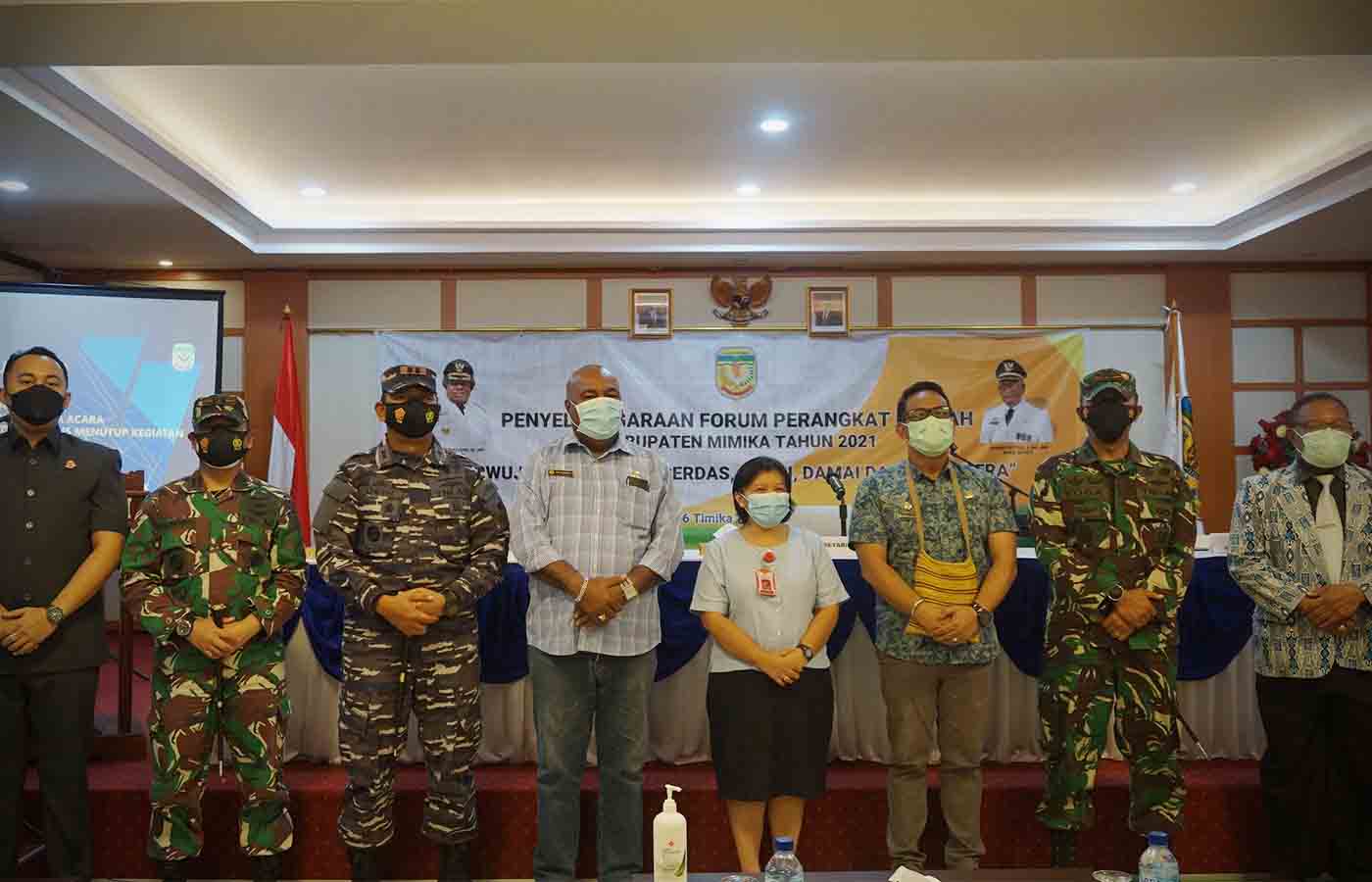 Asisten 1 Bidang Pemerintahan dan Kesejahteraan Rakyat Setda Mimika, Yulius Sasasari dan semua kepala OPD yang hadir di FPD.