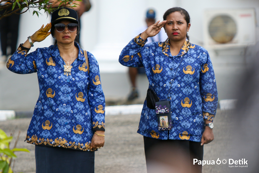 ASN Pemkab Mimika saat memberi penghormatan kepada bendera merah putih.