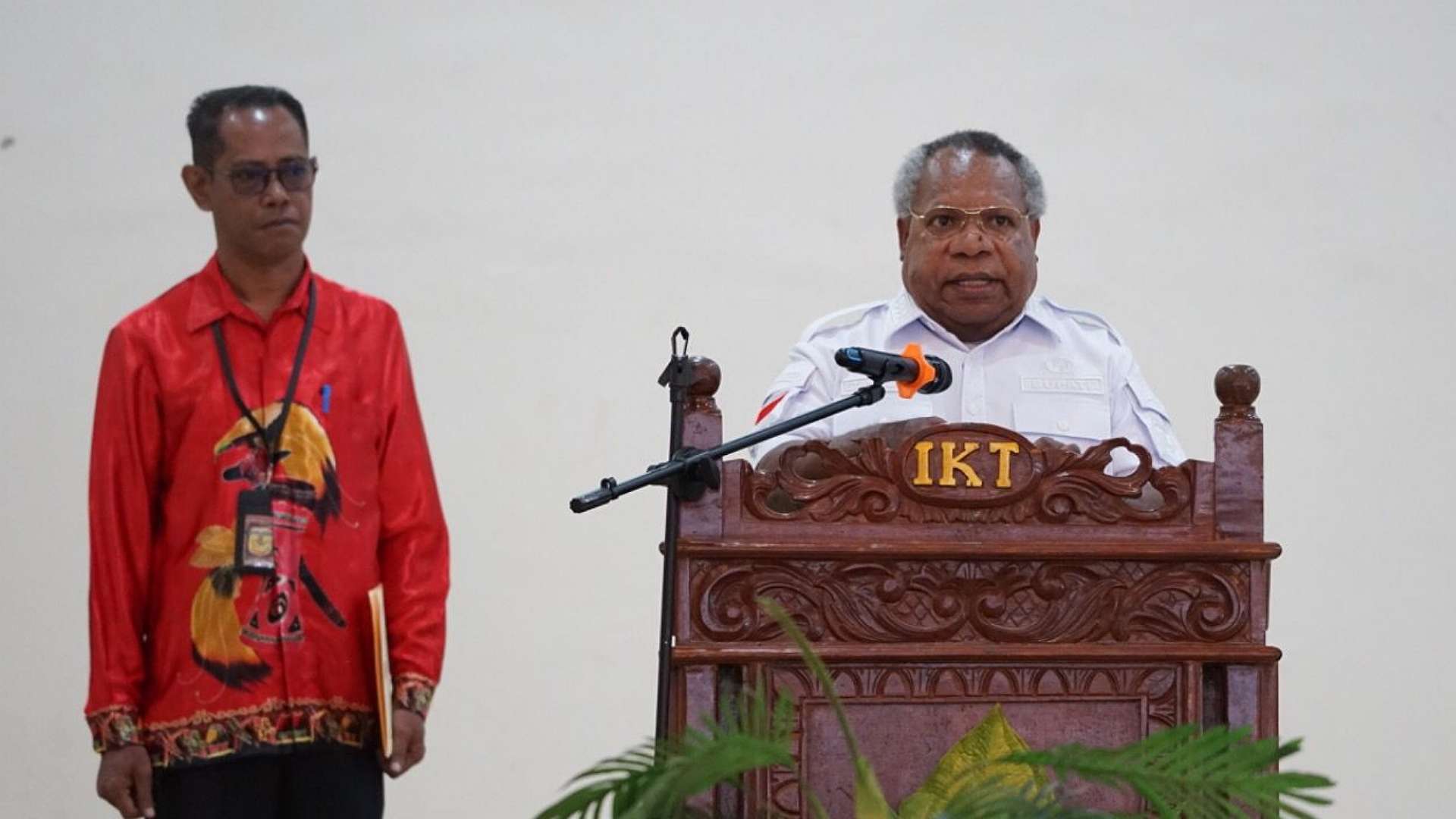 Bupati Mimika Eltinus Omaleng menyampaikan sambutan pembukaan prajabatan dan orientasi PPPK dan CPNS.
