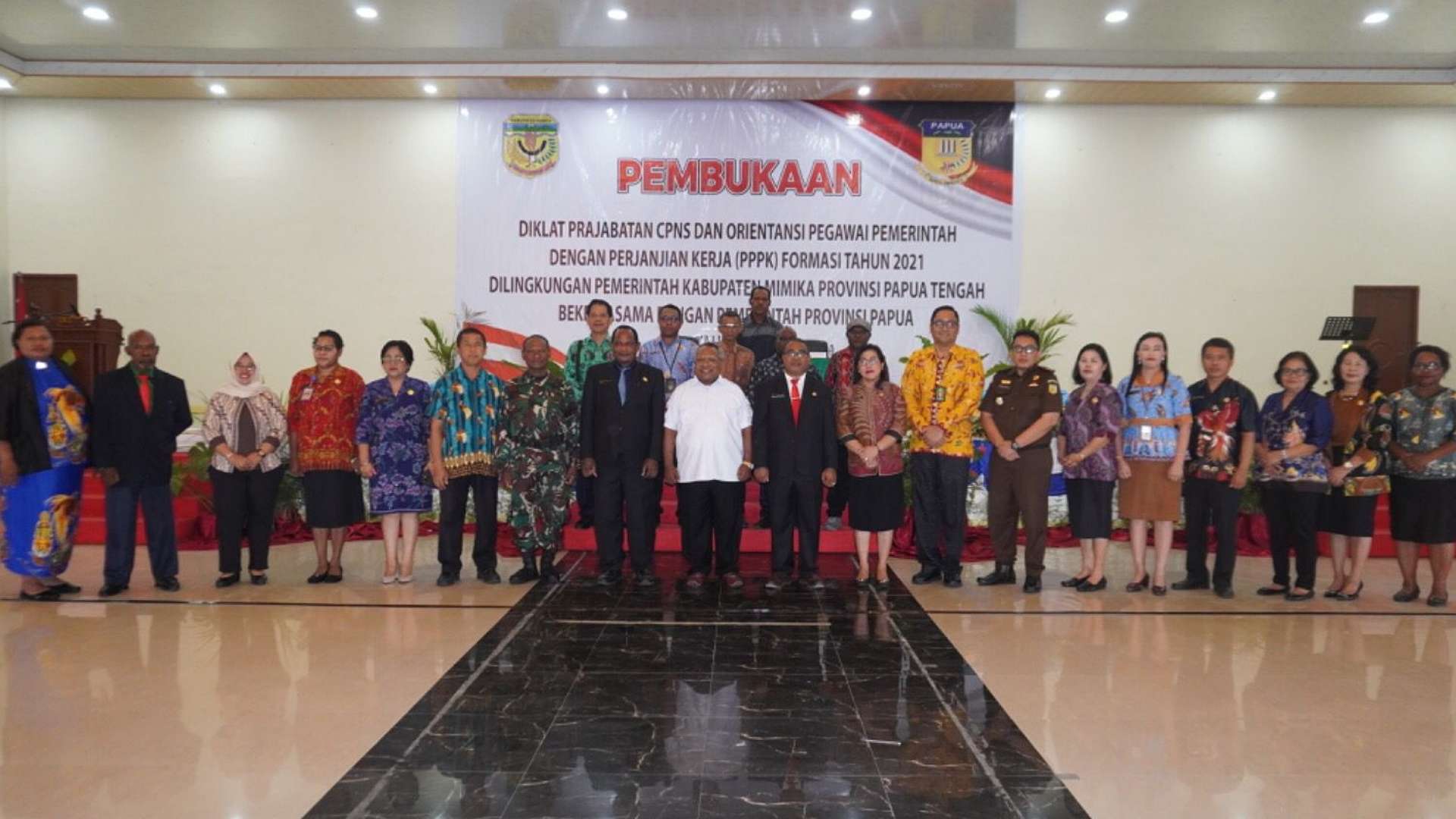 Forkopimda Mimika bersama peserta prajabatan dan orientasi PPPK dan CPNS.