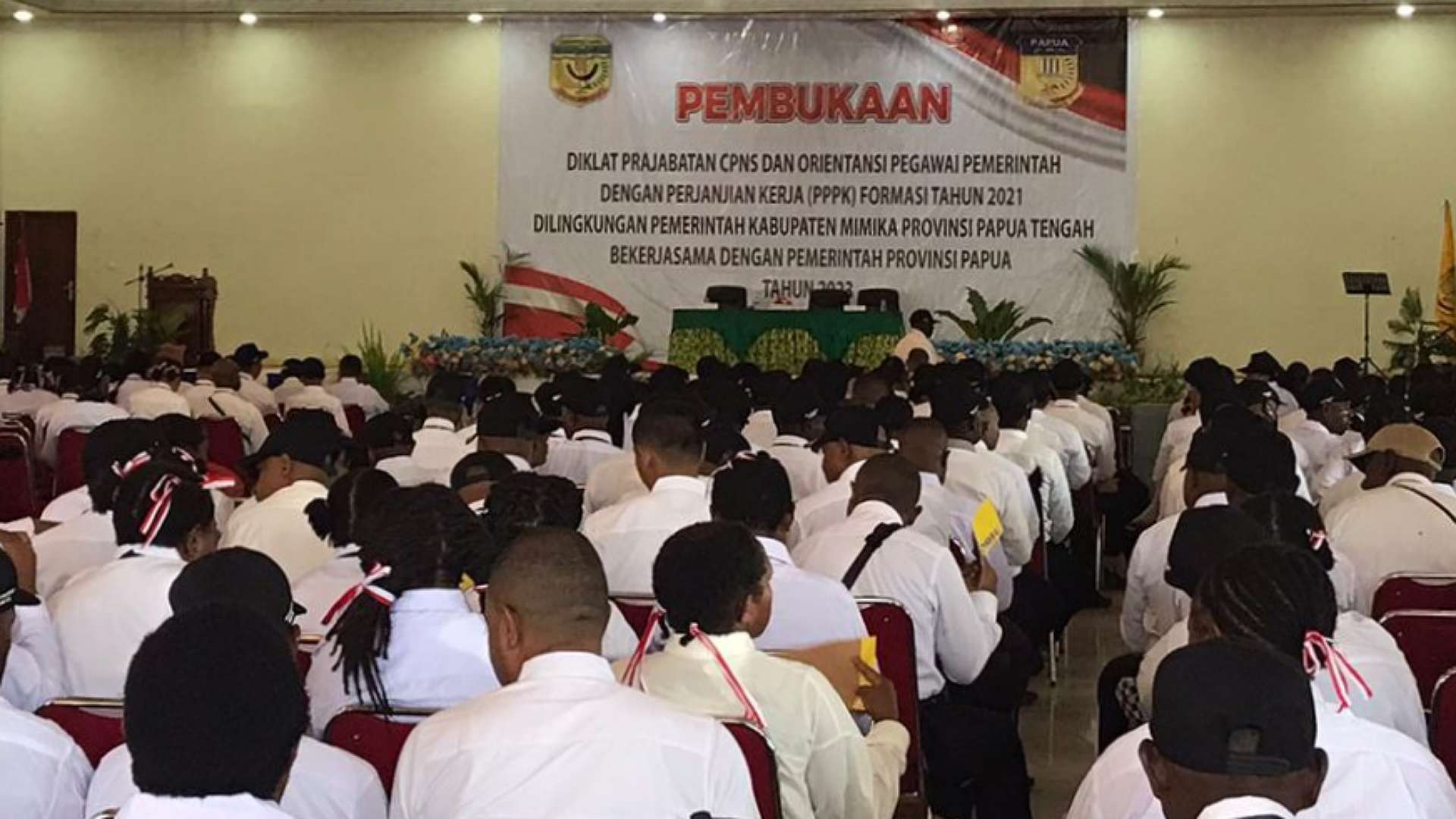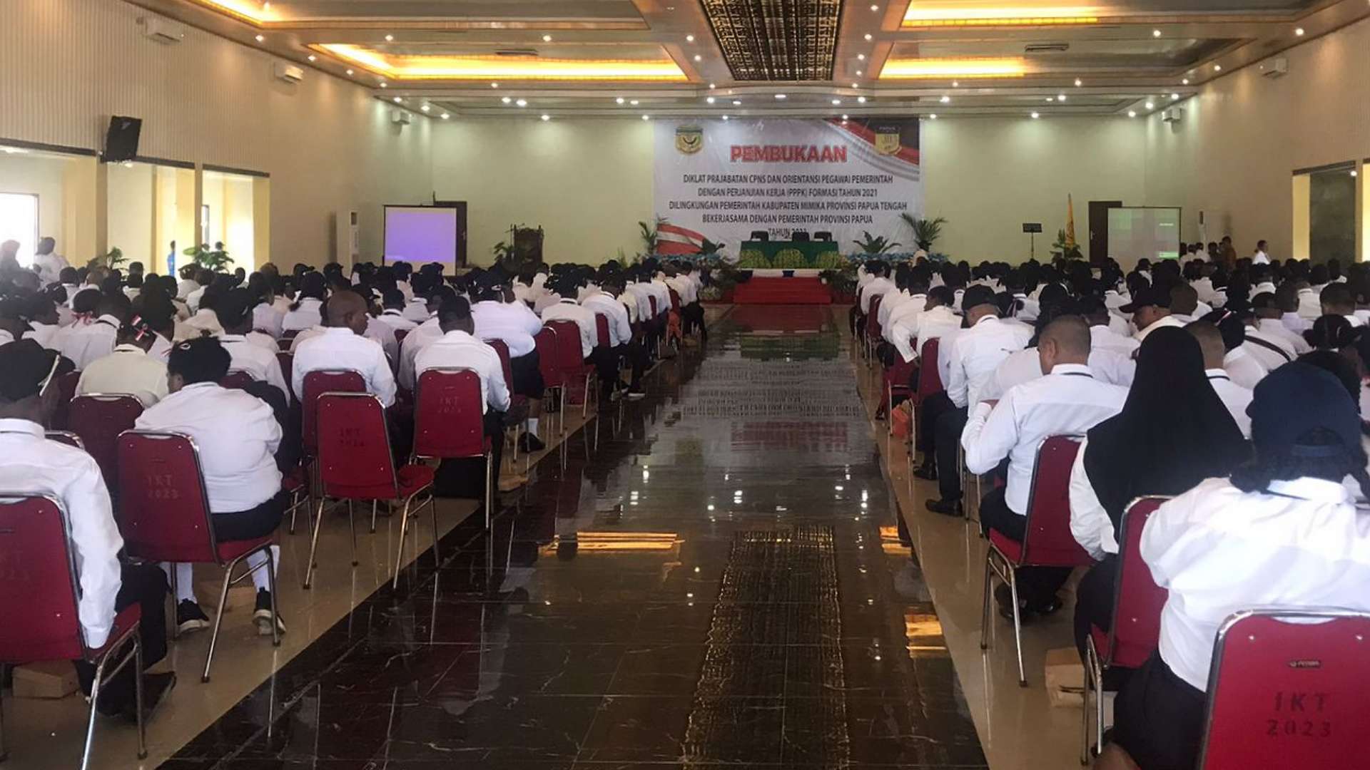 Papua60detik - Setelah penantian panjang, akhirnya sebanyak 598 Calon Pegawai Negeri Sipil (CPNS) dan Pegawai Pemerintah dengan Perjanjian Kerja (PPPK) di lingkungan Pemkab Mimika ikut Diklat prajabatan dan orientasi mulai Kamis (30/11/2023). (Faris)