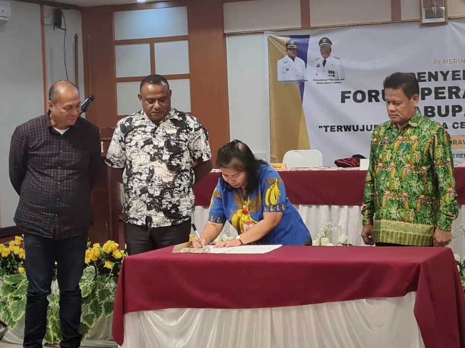 Kepala Bappeda Mimika, Yohana Paliling menandatangani berita acara hasil Forum Perangkat Daerah rancangan awal RKPD.