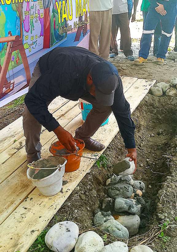 Leonardus Tumuka meletakkan batu pertama pembagunan Rumah Transit Yau Ma'o