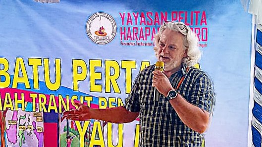 Penggagas Rumah Transit Yau Ma'o, Leonardus Tumuka menyampaikan sambutan