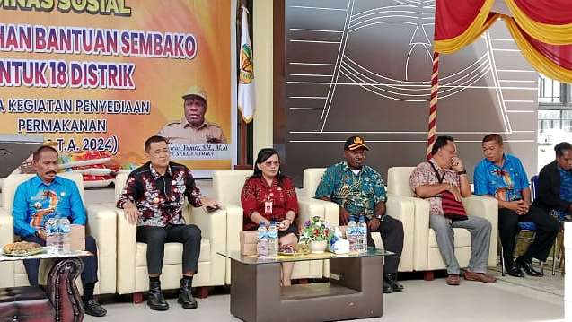 Papua60detik- Pemerintah Kabupaten Mimika, melalui Dinas Sosial menyalurkan bantuan sembako kepada ribuan kepala keluarga (KK) yang tersebar di 18 distrik. Bantuan sembako diserahkan langsung oleh Pj Bupati Mimika Valentinus Sudarjanto S Sumito di Kantor Distrik Mimika Baru, Kamis (03/10/2024). Bantuan yang bersumber dari dana Otsus itu disalurkan kepada 3.050 KK dari 6 distrik dalam kota, 2.240 KK dari distrik pegunungan dan 3.650 KK distrik pesisir. Totalnya 8.940 KK. (Martha)