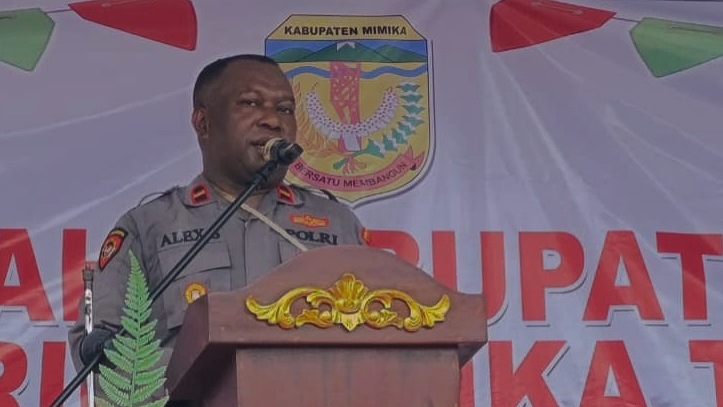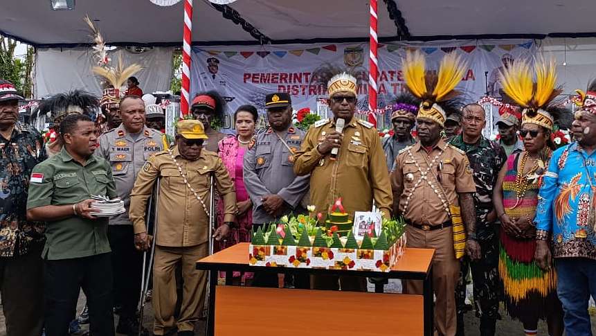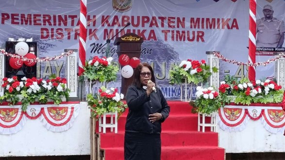Kadistrik Mimika Timur, Oktovianus Kum menyampaikan sambutan