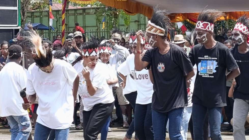 Anak muda Mimika Timur menari di sesi hiburan