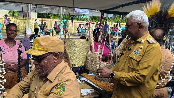 Plt Bupati Mimika John Rettob didampingi Pj Sekda Mimika, Petrus Yumte mengunjungi stand pameran Mama-Mama Kamoro