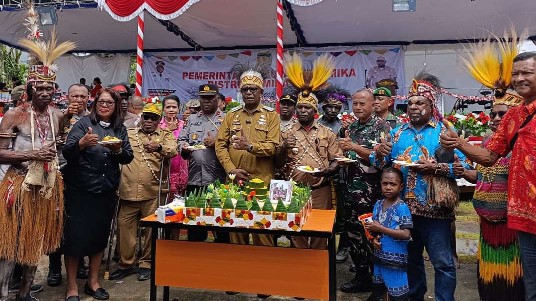 Papua60detik - Mapurujaya genap berusia ke-48 tahun ini. Perayaannya dipusatkan di halaman Kantor Distrik Mimika Timur, Senin (19/08/2024). Plt Bupati Mimika, Johannes Rettob hadir merayakannya bersama warga. (Martha)