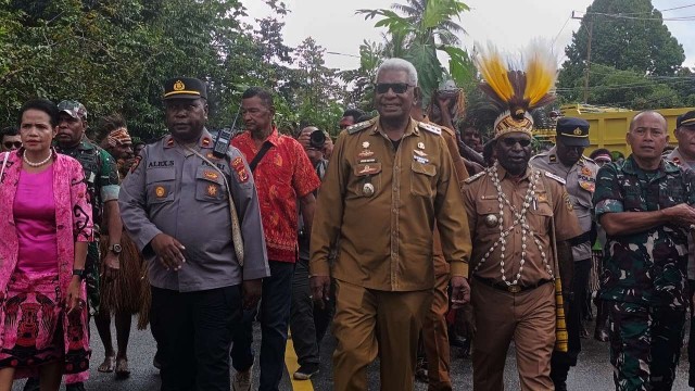 Plt Bupati Mimika, John Rettob dan rombongan Pemkab tiba di Distrik Mimika Timur.