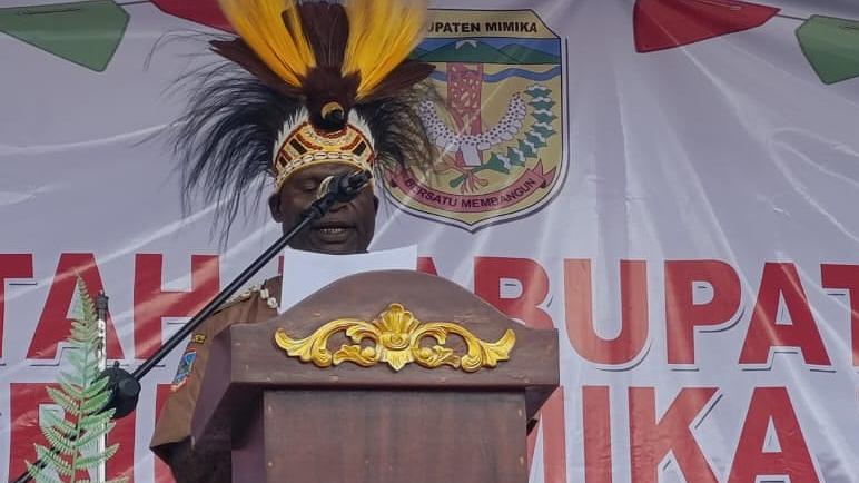 Plt Bupati Mimika, John Rettob saat menyampaikan sambutan