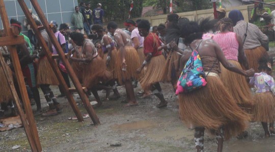 Pertunjukan tarian semut dari Kampung Kaugapu Distrik Mimika Timur. Foto: Eka - Papua60detik