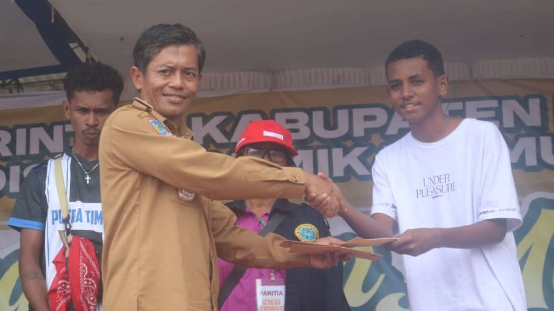 Penyerahan hadiah oleh Kadistrik kepada pemenang lomba video pendek. Foto: Eka - Papua60detik