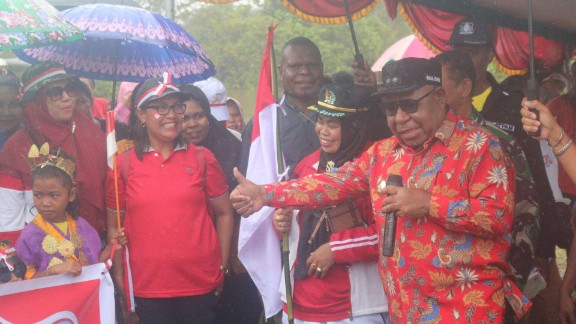 Sambutan Bupati Mimika Johannes Rettob pada HUT ke-49 Mapurujaya. Foto: Eka - Papua60detik