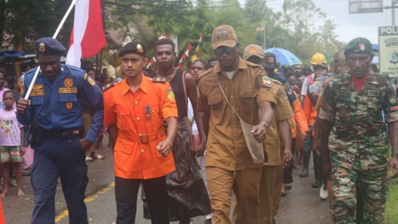 Pemotongan tumpeng pada HUT ke-49 Mapurujaya oleh Kadistrik, Bupati, Wakil Bupati bersama aparat keamanan dan anggota DPRK. Foto: Eka - Papua60detik