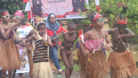 Peserta Festival Budaya oleh masyarakat dengan tema profesi pada HUT ke-49 Mapurujaya. Foto: Eka - Papua60detik