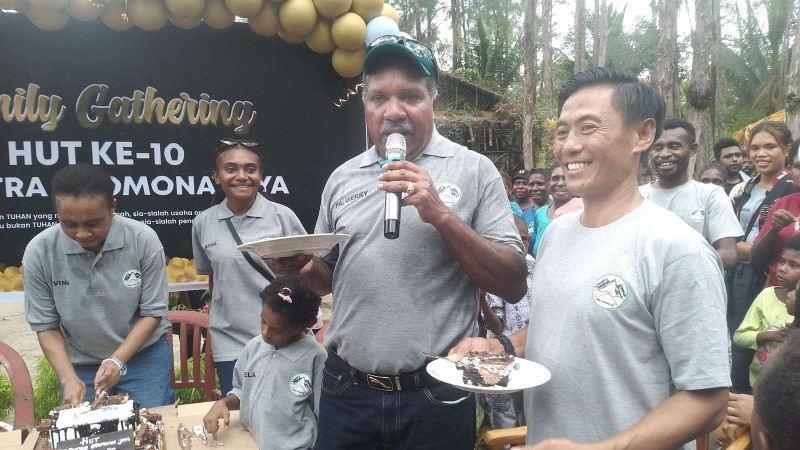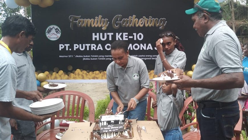Papua60detik - Keluarga besar PT Putra Otomona Jaya merayakan satu dekade atau 10 tahun berdirinya perusahaan tempat mereka bekerja dengan family gathering di MP 21 Timika, Sabtu (17/02/2024). Tampak hadir karyawan PT Putra Otomona Jaya dan perwakilan perusahaan mitra seperti PT Freeport Indonesia (PTFI) dan PT Petrosea. (Martha)