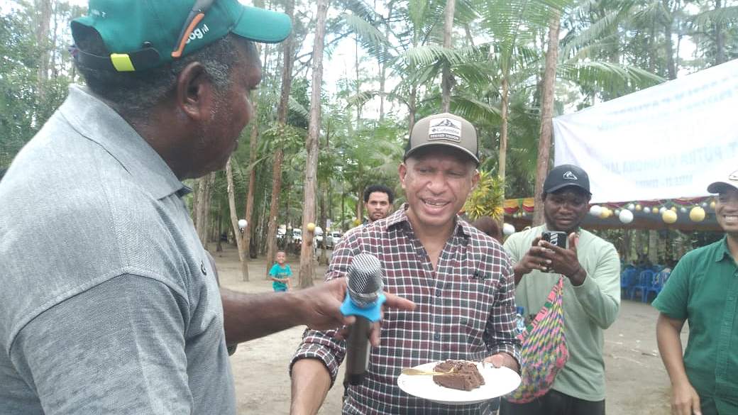 Pemberian kue HUT kepada VP Community Relations PTFI, Engel Enoch.