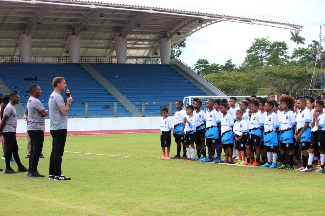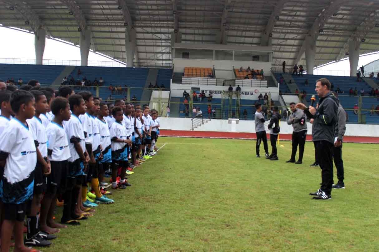 Direktur PFA, Wolfgang Pikal bersama peserta PFA Cari Bakat zona Timika.