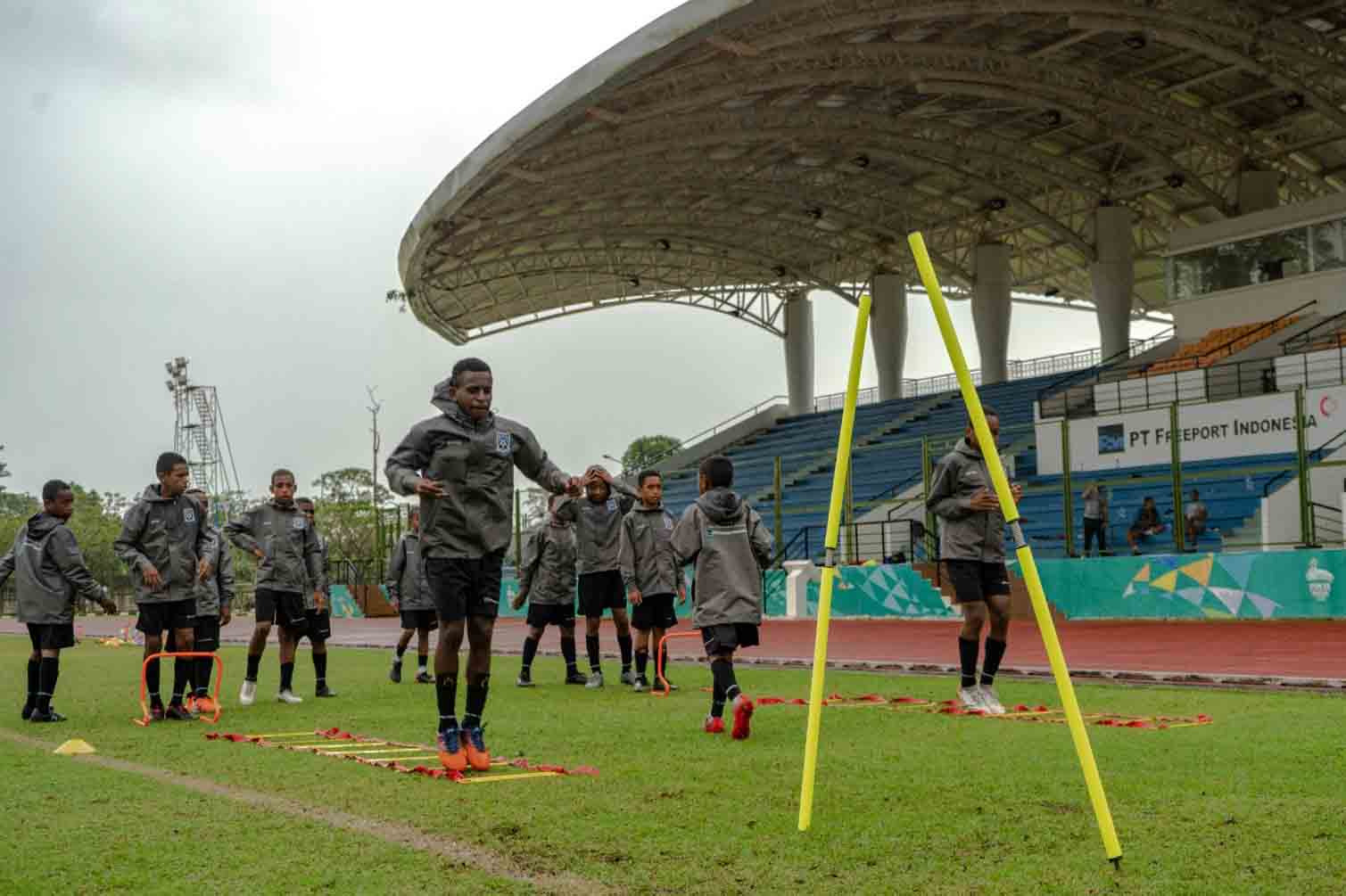 Manajemen dan staf pelatih menyampaikan arahan kepada peserta PFA Cari Bakat zona Timika.