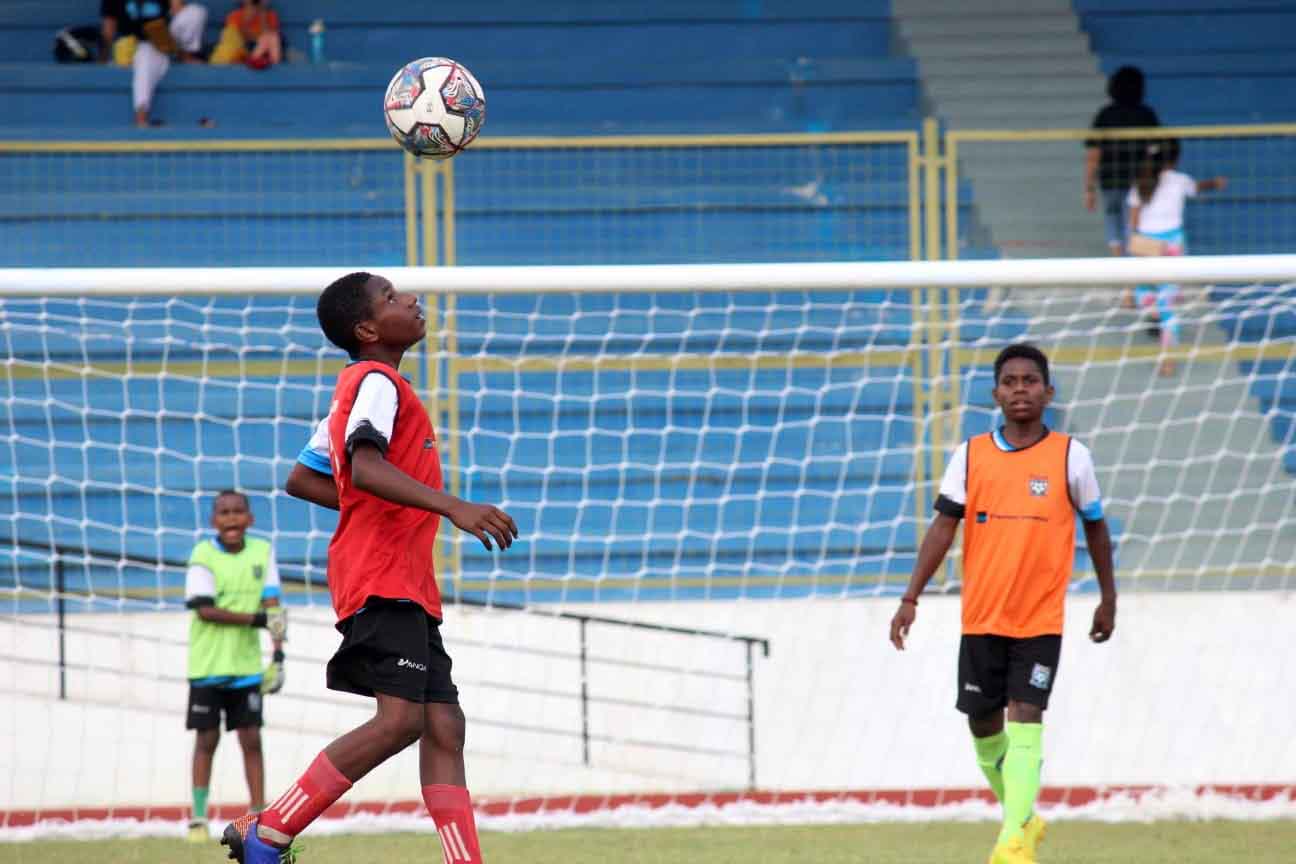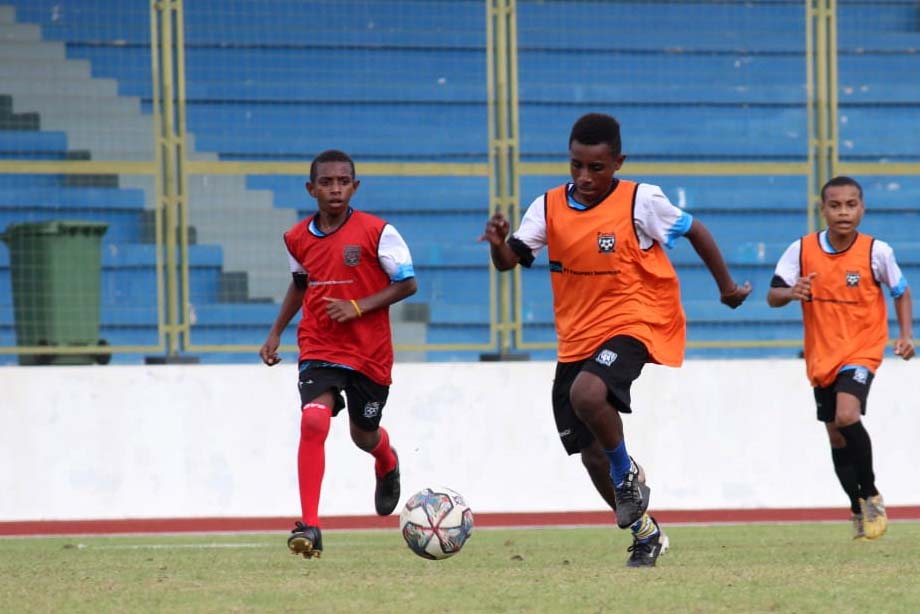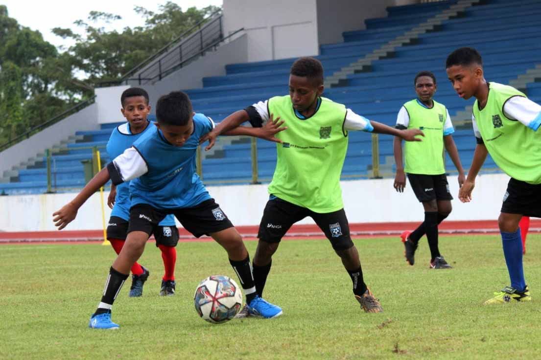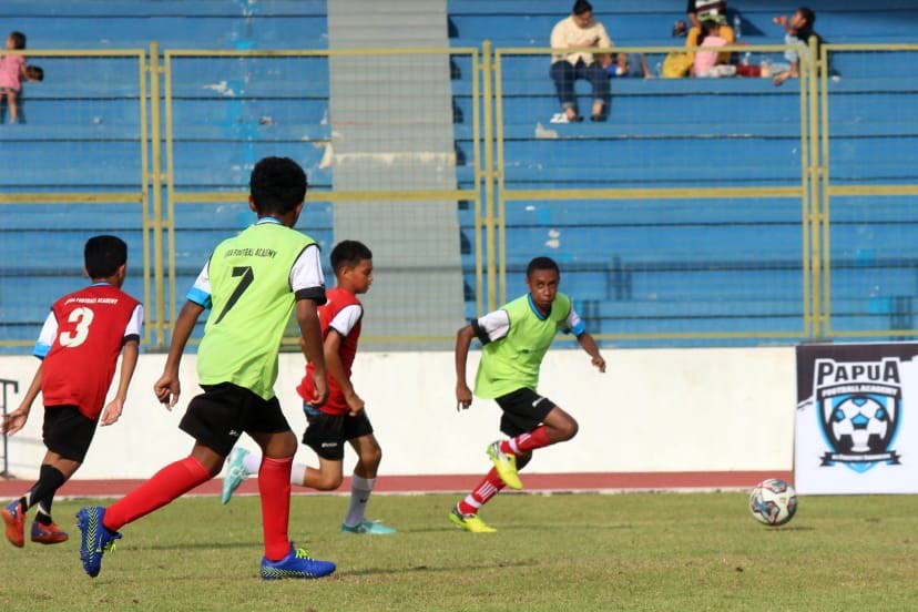 Pertandingan antar peserta PFA Cari Bakat di Lapangan Mimika Sport Complex