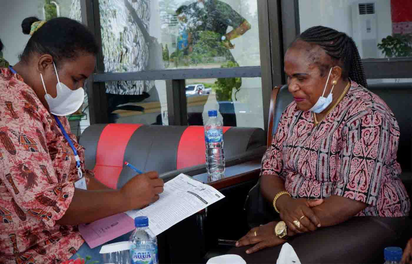 Petugas melakukan pendataan kepada Ketua DPRD Mimika Robby K Omaleng dan keluarga.