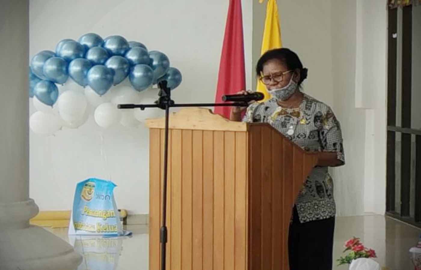 Kepala DP3AP2KB Mimika, Maria Rettob menyampaikan sambutan.