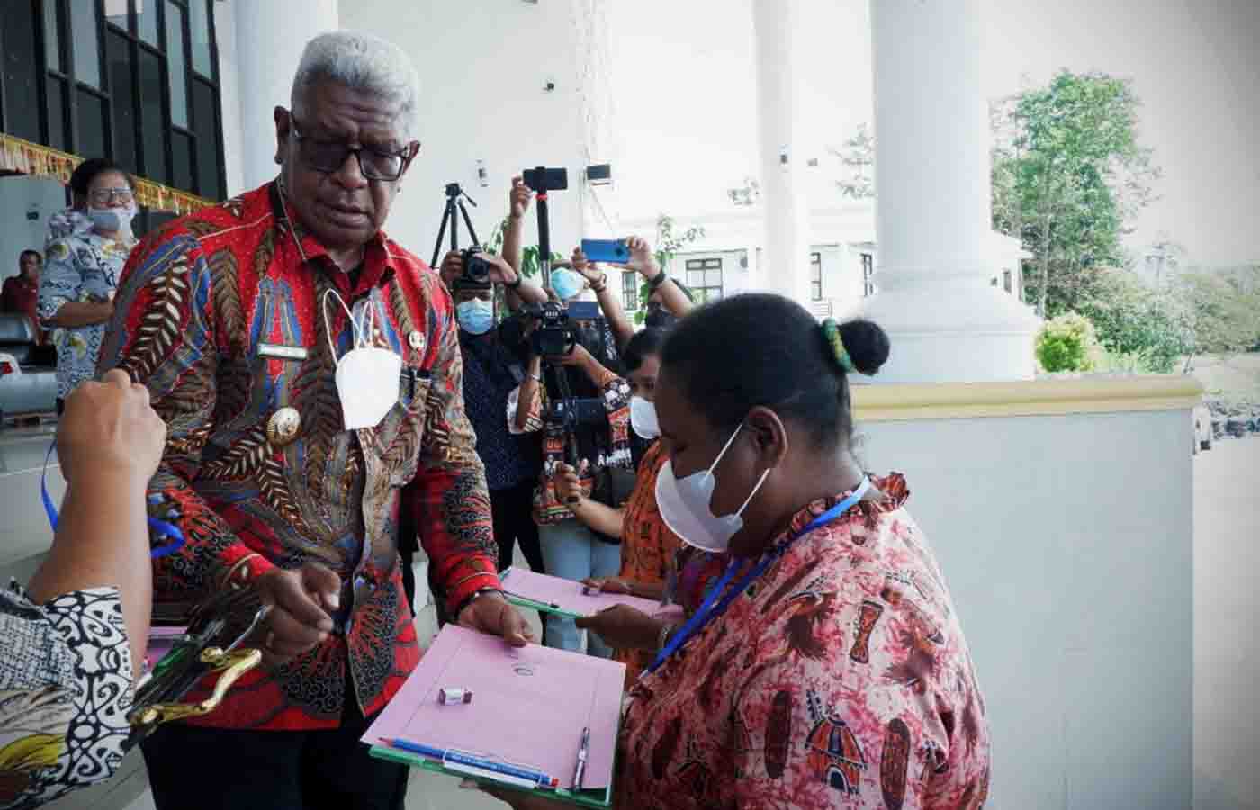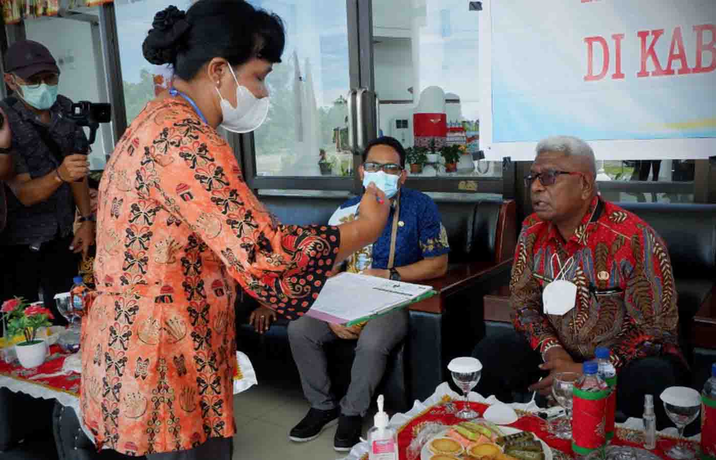 Wakil Bupati Mimika memberikan form pendataan keluarga kepada petugas.