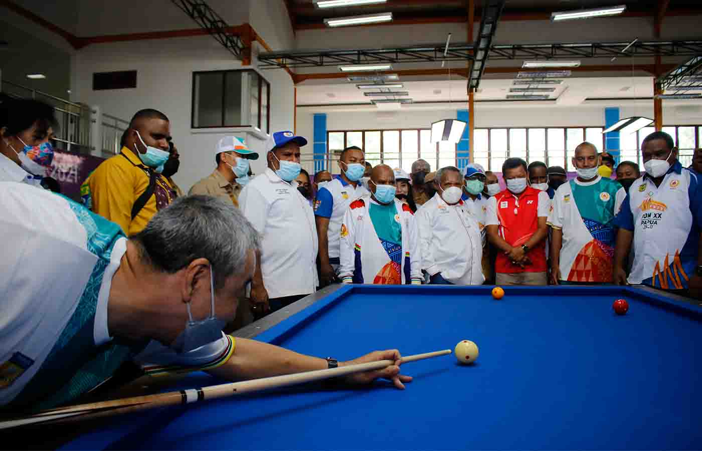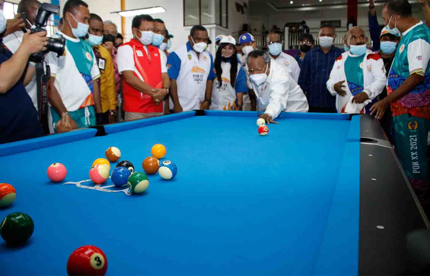 Gubernur Papua, Lukas Enembe menjajal meja biliard PON.