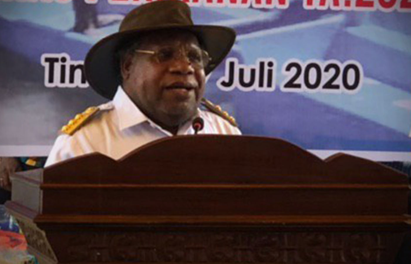 Bupati Mimika, Eltinus Omaleng menyampaikan sambutan