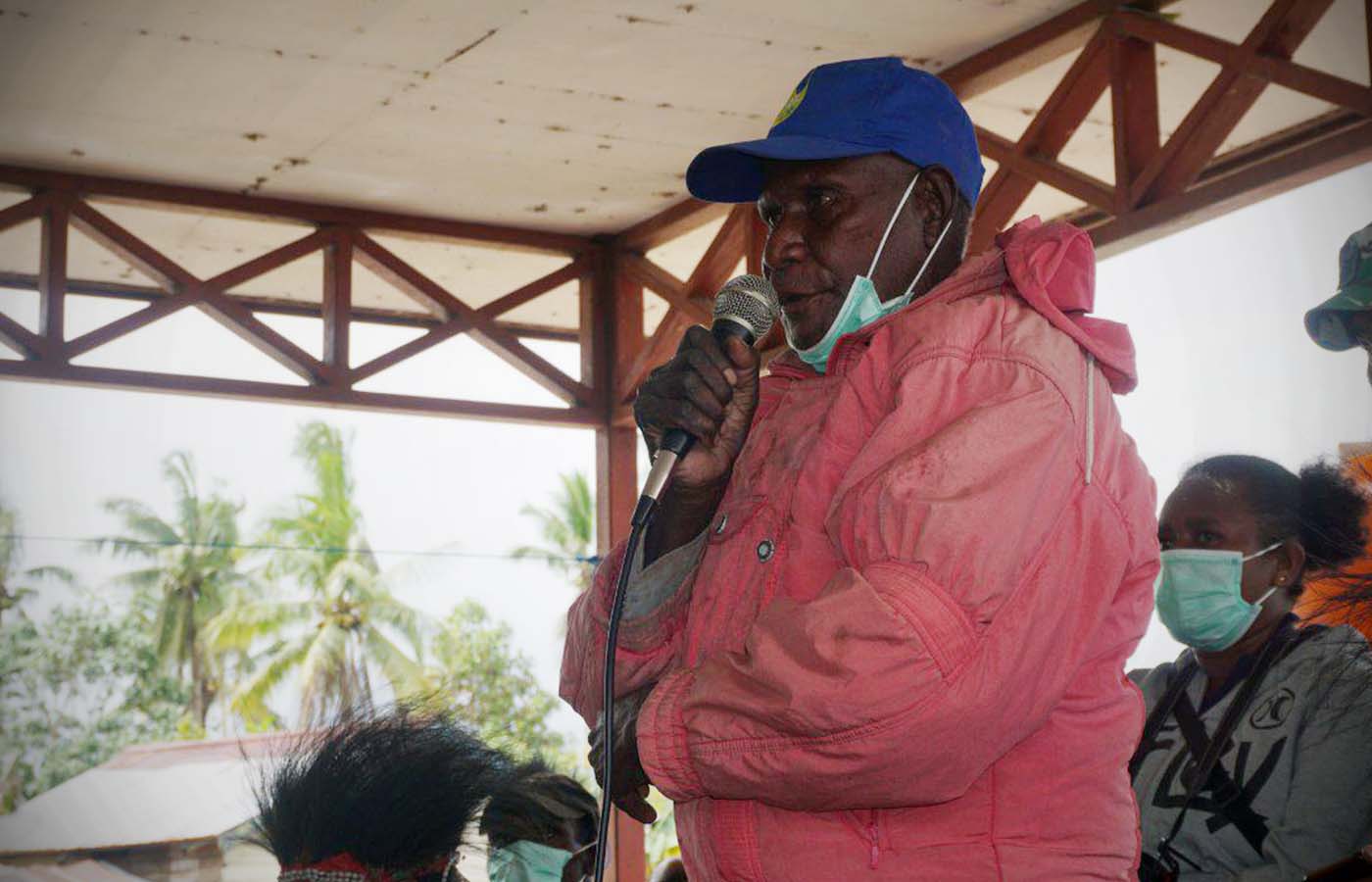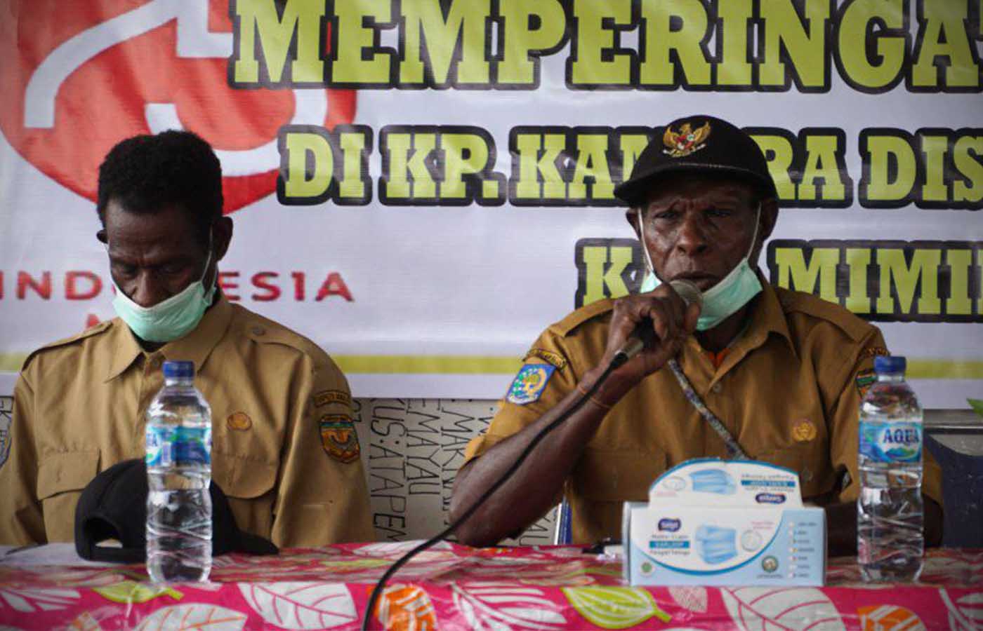 Kepala Kampung Kamora Thobias Nipayau menyampaikan sambutan.