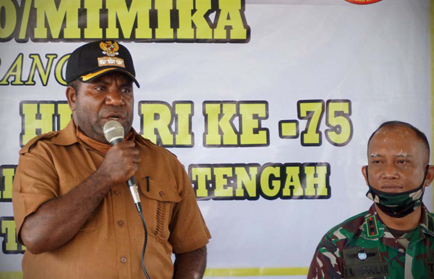 Kadistrik Mimika Tengah, Samuel Yogi memberikan sambutan.
