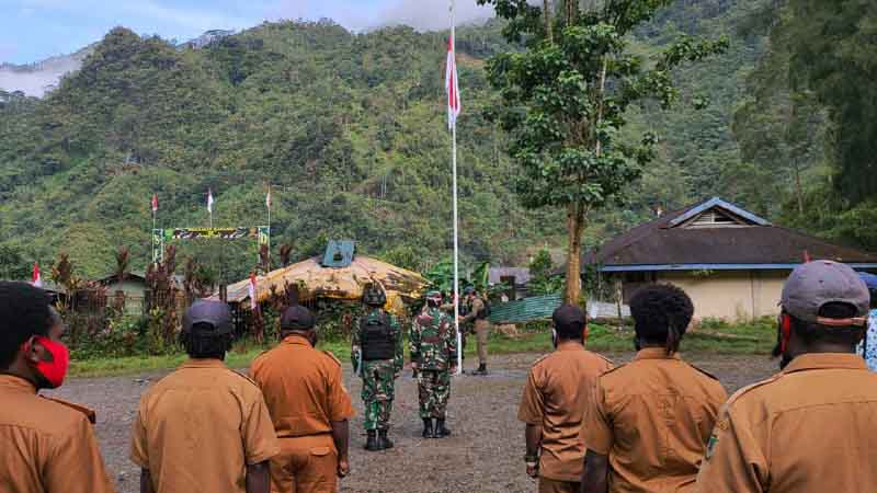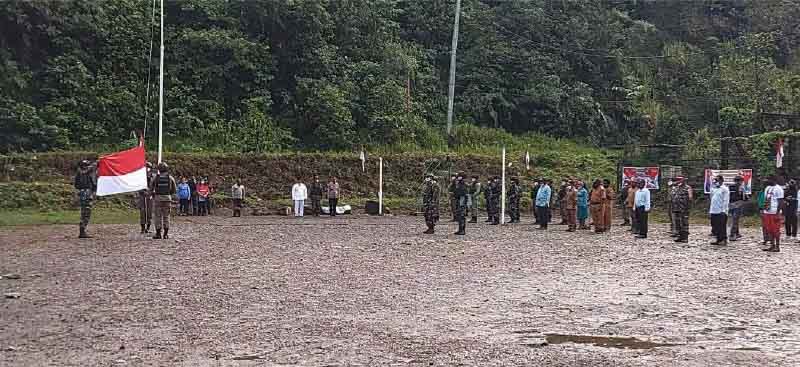 Papua60detik - Pemerintahan Distrik Tembagapura bersama jajaran TNI-Polri melaksanakan upacara peringatan HUT RI ke-76 di Kampung Banti 2, Distrik Tembagapura, Selasa (17/8/2021). Upacara berlangsung khidmat dan kondusif tanpa gangguan keamanan. Warga yang mengikuti rangkaian kegiatan menerapkan protokol kesehatan.